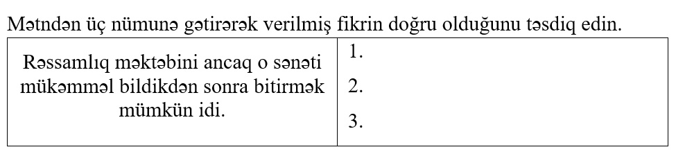 – Sən gözəl bir əsər çəkməlisən. ③ Bu elə bir əsər olmalıdır ki, hər kəs heyran olsun. Get və tələsmədən əsərini yarat.