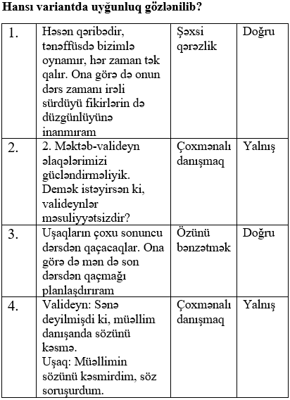 Müəllimin yanlışa yol verdiyi situasiyanı müəyyənləşdirin