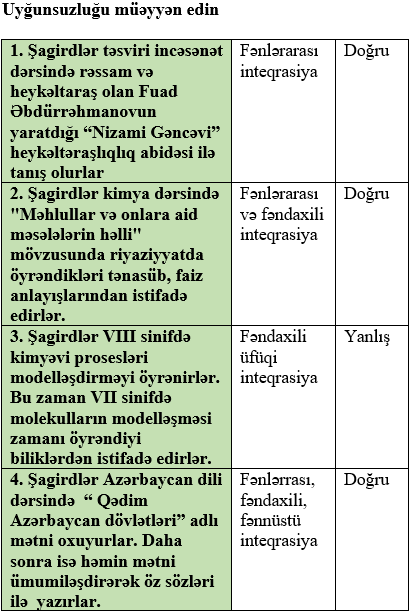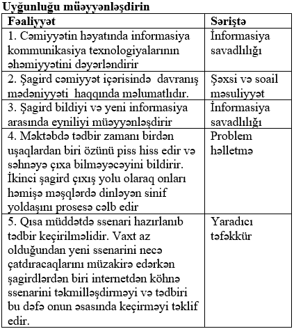 Müəllim “İskəndərnamə poeması”nı keçdikdən sonra şagirdlərə tarixi şəxsiyyət İskəndərlə bağlı araşdırma aparmağı tapşırır. Bu situasiyaya əsasən inteqrasiyanın növünü və formalaşacaq səriştəni müəyyən edin