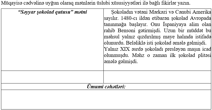 Anası bahalı şokolad qutusunu tərifləyə-tərifləyə dedi: