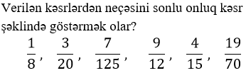 Məxrəci 110 olan düzgün kəsrlərdən neçəsini sonlu onluq kəsr şəklində göstərmək olar?