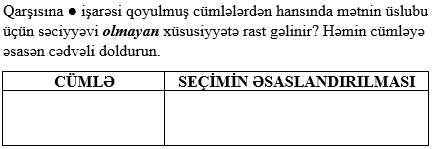 Mətndə nömrələnmiş sözlərə əsasən cədvəli doldurun.