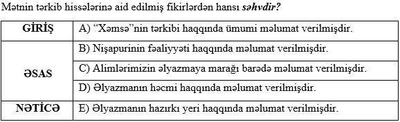 Verilənlərdən biri mətnə əsasən doğru deyil?